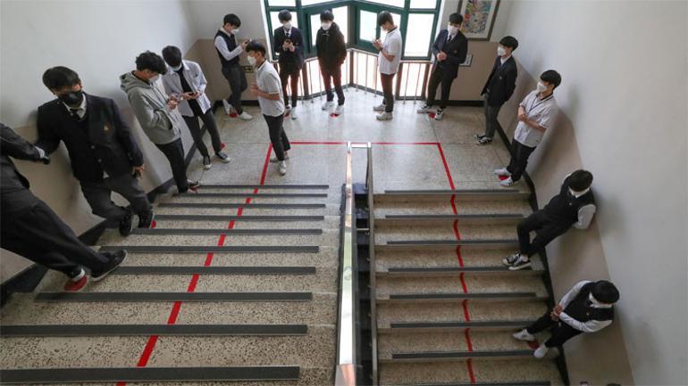 Güney Kore'de lise öğrencileri Mayıs ayında 79 günlük aranın ardından sınıflara geri dönmüştü. Okula girişlerde öğrencilerin ateşleri ölçülmüş, birçok noktaya da el dezenfektanı yerleştirilmişti. Maske takmanın zorunlu tutulduğu okullarda, temasın en aza indirilmesi amacıyla öğrencilerin tek kişilik sıralarıu şeffaf bir paravanla kaplanmıştı.