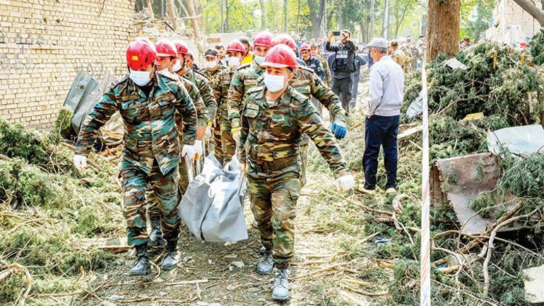 Azerbaycan ve Ermenistan, Moskova’da yapılan görüşmelerde, 10 Ekim Cumartesi günü saat 12.00’den itibaren geçerli olmak üzere Dağlık Karabağ’daki cenazelerin ve esirlerin değişimini öngören insani amaçlı ateşkes kararına imza atmıştı. Gün içinde sivil yerleşim yerlerini bombalayarak ateşkesi ihlal eden Ermenistan, ateşkes anlaşmasından 14 saat sonra sivilleri hedef aldı. Azerbaycan’ın en büyük ikinci kenti olan Gence’ye gece 02.00’de uzun menzilli balistik füze ile saldırdı. Saldırıda 18 ailenin yaşadığı bir bina tamamen yıkıldı. Uykularında vurulan ailelerden büyük çoğunluğu çocuk olmak üzere 43 kişi enkaz altında kaldı. Patlamanın şiddetinden 3 kilometrelik alandaki tüm ev, bina, işyerleri ve kamu binalarında hasar oluştu, camları kırıldı. Patlamanın sesi 35 kilometrelik alandan duyuldu. Azerbaycan arama kurtarma ekipleri, 16 saat enkazda arama çalışması yaptı. Azerbaycan Cumhurbaşkanı Yardımcısı Hikmet Hacıyev, olay yerine gelerek enkaz başında incelemelerde bulundu.